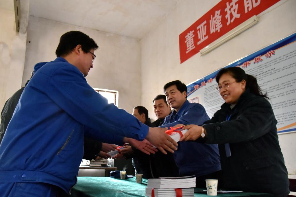 在授书仪式上,董亚峰介绍了自己的工作学习体会,“干好机电工作,我的经验就是:好好学习、天天思考,认真钻研、善于总结……”朴实的话语道出了职工岗位成才的真谛。